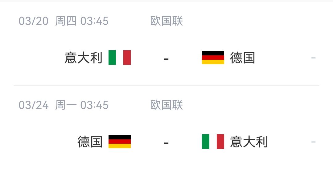 此前的歐國(guó)聯(lián)小組,德國(guó)隊(duì)力壓荷蘭、匈牙利和波黑以小組第一晉級(jí)淘汰賽,在1/4決賽中,他們要面對(duì)的是意大利隊(duì)。德國(guó)與意大利將在北京時(shí)間3月20日和3月24日凌晨進(jìn)行兩回合主客場(chǎng)的交鋒。