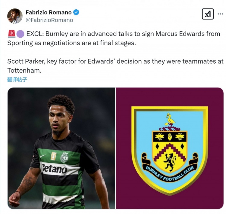 羅馬諾指出,伯恩利對葡萄牙體育26歲邊鋒愛德華茲感興趣,正在深入商談球員的轉(zhuǎn)會,談判已進(jìn)入最后階段。伯恩利主帥斯科特-帕克將是愛德華茲做出決定的關(guān)鍵因素,兩人都曾為熱刺效力。