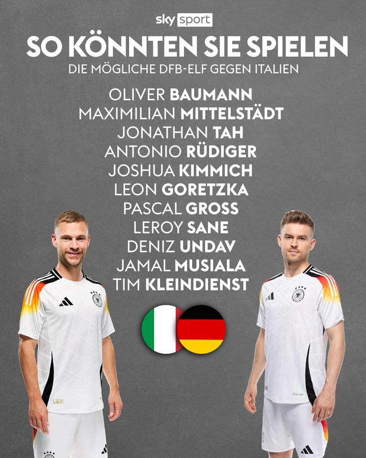 3月20日訊 在3月21日凌晨03:45,歐國聯(lián)1/4賽決賽首回合,德國即將客場(chǎng)挑戰(zhàn)意大利。德天空預(yù)測(cè)了德國隊(duì)首發(fā)陣容,拜仁多人入選。