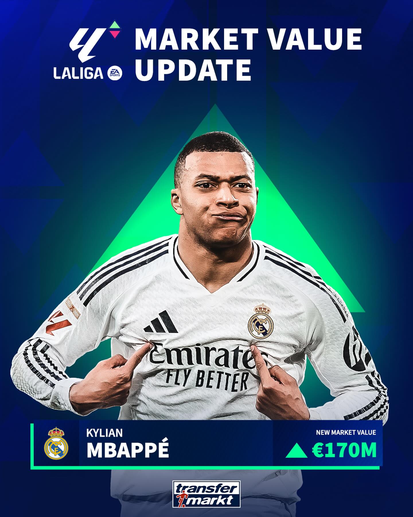 03月21日訊 今日德國轉(zhuǎn)會(huì)市場更新了西甲球員身價(jià),姆巴佩上漲1000萬歐至1.7億歐。
