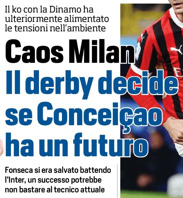 輸給薩格勒布迪納摩的比賽引爆了這場危機,現(xiàn)在米蘭陷入了全面的混亂,每個人都開始受到評估。就跟往常一樣,教練在這種情況下是最危險的人,雖然孔塞桑上任僅一個月就奪得了一座冠軍獎杯,但他現(xiàn)在面臨的風險最大。