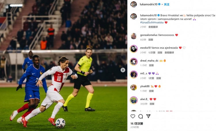 3月22日訊 克羅地亞在歐國聯(lián)八強戰(zhàn)首回合主場2-0擊敗法國,隊長莫德里奇在賽后通過社媒慶祝勝利。魔笛曬出自己的比賽照,并配文:“干得漂亮!克羅地亞????????昨晚我們?nèi)〉昧撕馨舻膭倮?!要在次回合要保持同等信念和自信?!?/p>根據(jù)賽程,兩隊將在北京時間24日凌晨再戰(zhàn),法國將回到主場迎戰(zhàn)克羅地亞。 本文標簽: 足球 西甲 皇家馬德里 法甲 國家隊 法國 克羅地亞 莫德里奇
