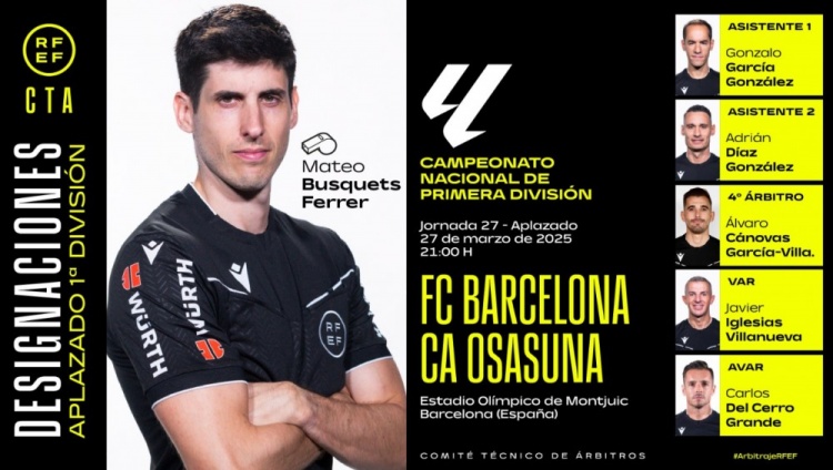 3月25日訊 北京時(shí)間3月28日凌晨4:00,2024-25賽季西甲第27輪補(bǔ)賽,巴塞羅那將迎戰(zhàn)奧薩蘇納。賽前,西班牙足協(xié)官方公布了本場比賽裁判組,費(fèi)雷爾執(zhí)法。主裁判:費(fèi)雷爾助理裁判:加西亞-岡薩雷斯、迪亞斯-岡薩雷斯第四官員:加西亞-比利亞VAR裁判:維拉諾瓦VAR裁判助理:格蘭德 本文標(biāo)簽: 足球 西甲 巴塞羅那 奧薩蘇納