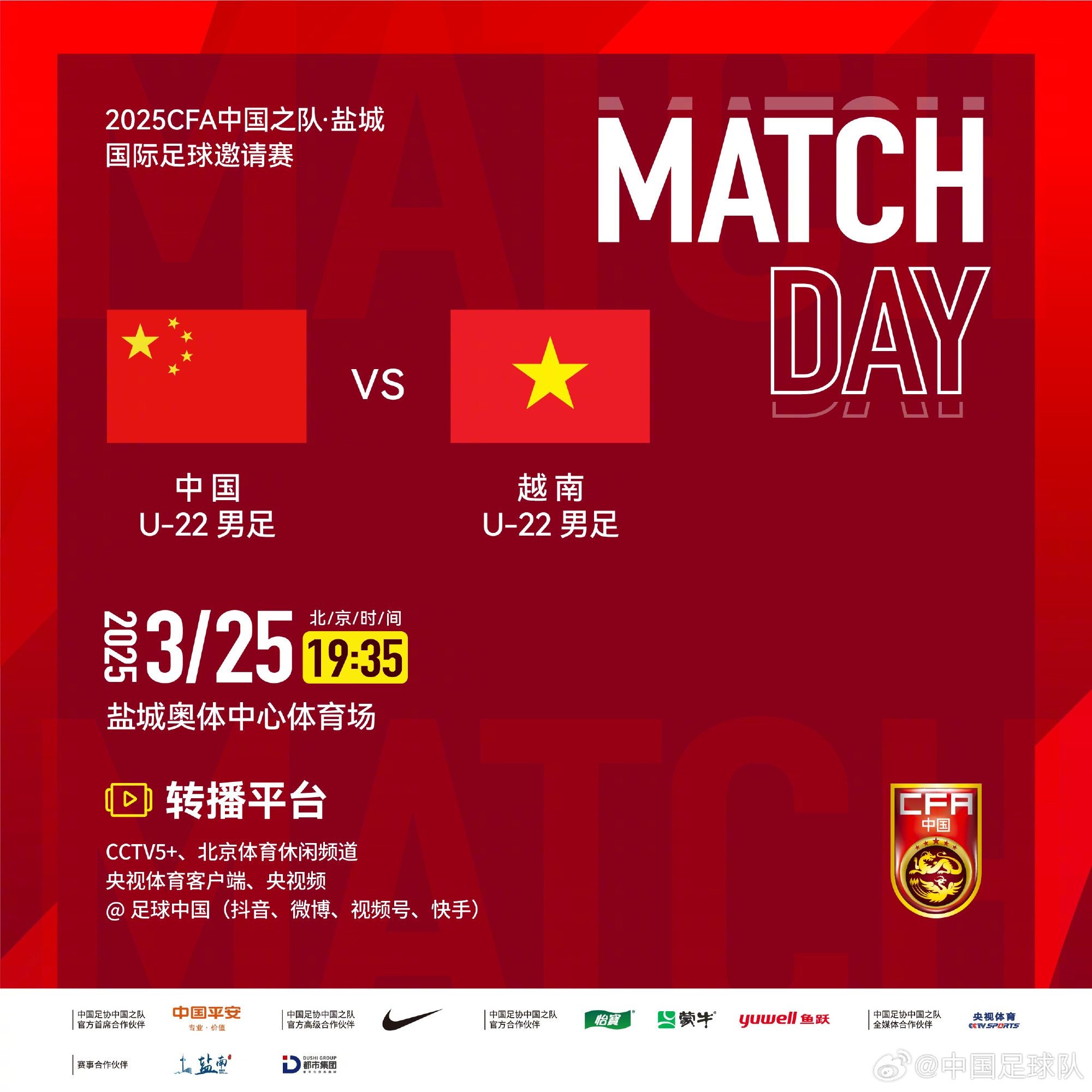 鹽城國(guó)際足球邀請(qǐng)賽中國(guó)U-22男足vs越南U-22男足,中國(guó)隊(duì)首發(fā)陣容