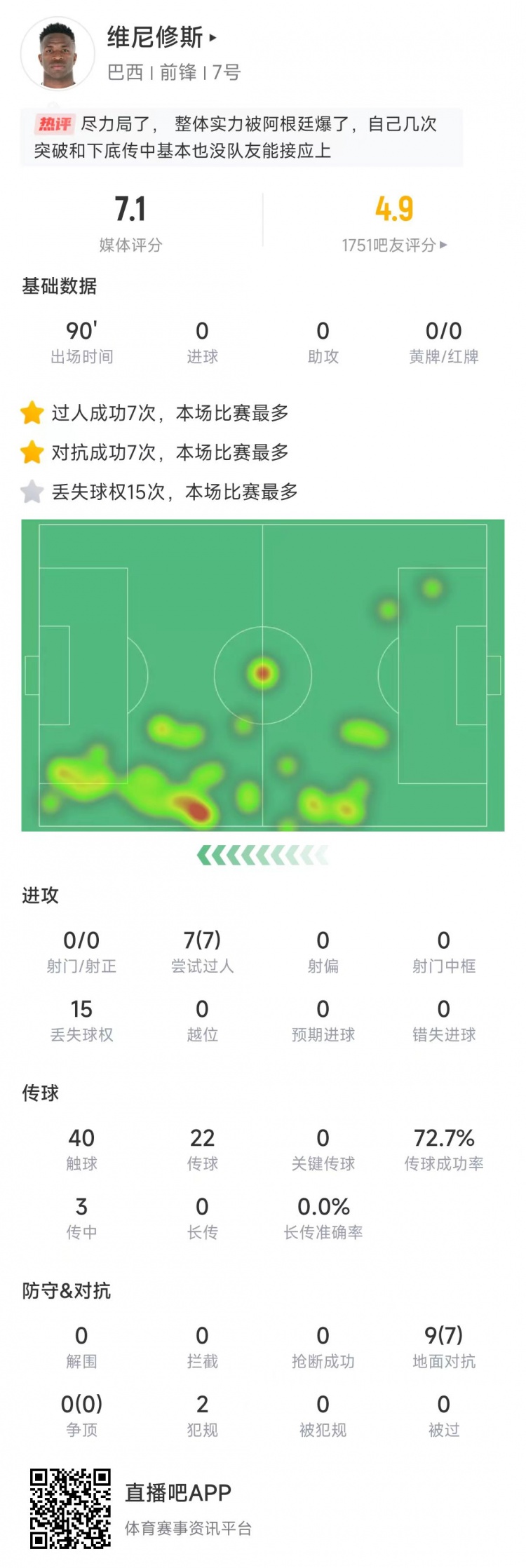 維尼修斯本場(chǎng)比賽數(shù)據(jù):