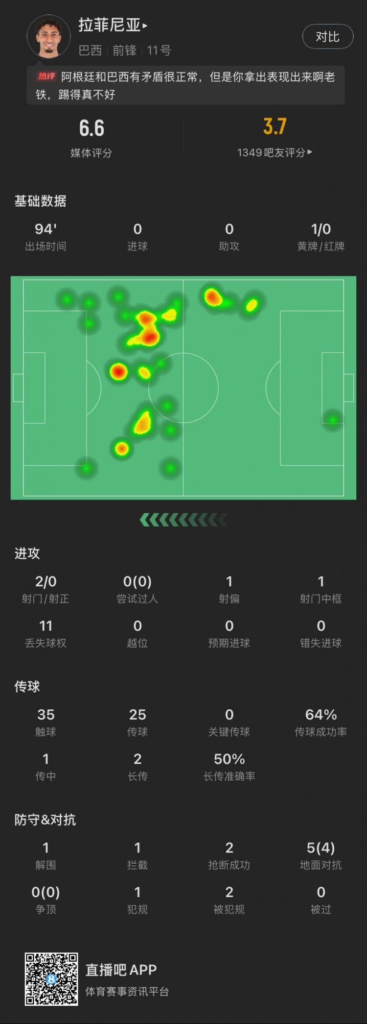 拉菲尼亞本場主要數(shù)據(jù)↓
