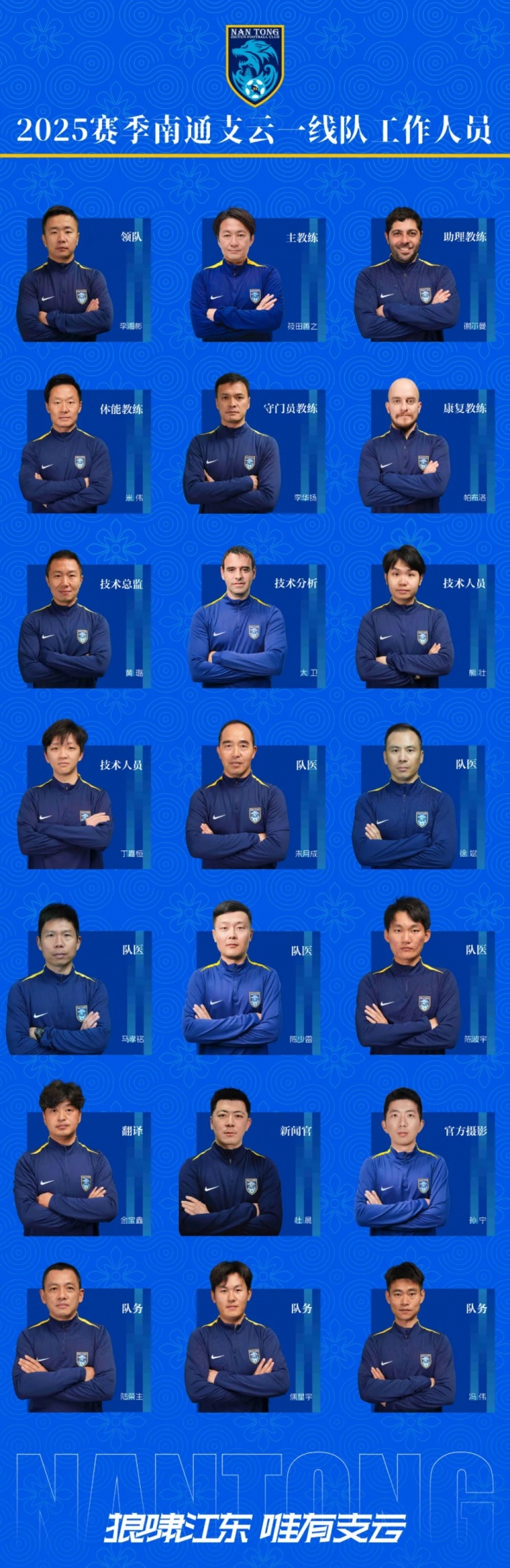 南通支云2025賽季一線隊大名單正式出爐!煥然一新的隊伍,期待與你一道,在綠茵賽場書寫屬于南通的藍色篇章,攜手完成賽季目標。為南通,我們一起戰(zhàn)斗!戰(zhàn)斗!戰(zhàn)斗!