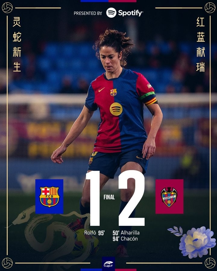 2月2日訊 本輪西甲女足爆出大冷門(mén),巴薩女足坐鎮(zhèn)主場(chǎng)1-2不敵聯(lián)賽倒數(shù)第二萊萬(wàn)特。