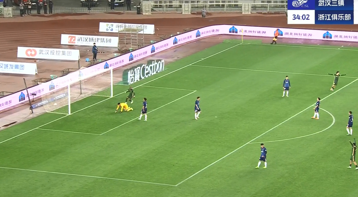 上半場補(bǔ)時(shí)9分鐘。半場戰(zhàn)罷,武漢三鎮(zhèn)0-4浙江隊(duì)。