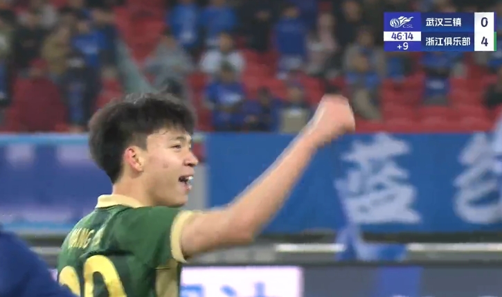 03月28日訊 中超第3輪,武漢三鎮(zhèn)vs浙江。上半場(chǎng)補(bǔ)時(shí)階段,三鎮(zhèn)后衛(wèi)回傳失誤,王鈺棟晃過(guò)門(mén)將打空門(mén)得手,打入中超處子球!浙江4-0領(lǐng)先!