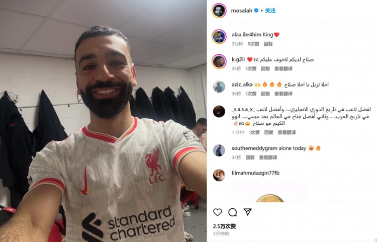 2月2日訊 利物浦在本輪英超2-0力克伯恩茅斯,梅開二度的薩拉赫堪稱最大功臣。薩拉赫先是在上半場點(diǎn)射破門,又在下半場通過個人能力撩射建功。他也賽后通過社媒曬出自己在更衣室的自拍照紀(jì)念勝利。值得一提的是薩拉赫在本場比賽打進(jìn)兩球,超越傳奇蘭帕德以178球獨(dú)享英超歷史射手榜第6位。 本文標(biāo)簽: 足球 英超 利物浦 伯恩茅斯