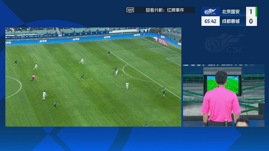 北京國安本輪的對手是成都蓉城,比賽下半時國安后防核心恩加德烏后場拿球失誤,隨即又放倒了前來搶斷的費(fèi)利佩,當(dāng)值主裁馬寧在經(jīng)過VAR視頻回看后將恩加德烏罰下。