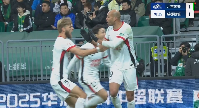 比賽第77分鐘費(fèi)利佩亂戰(zhàn)破門,蓉城1-1追平國安。
