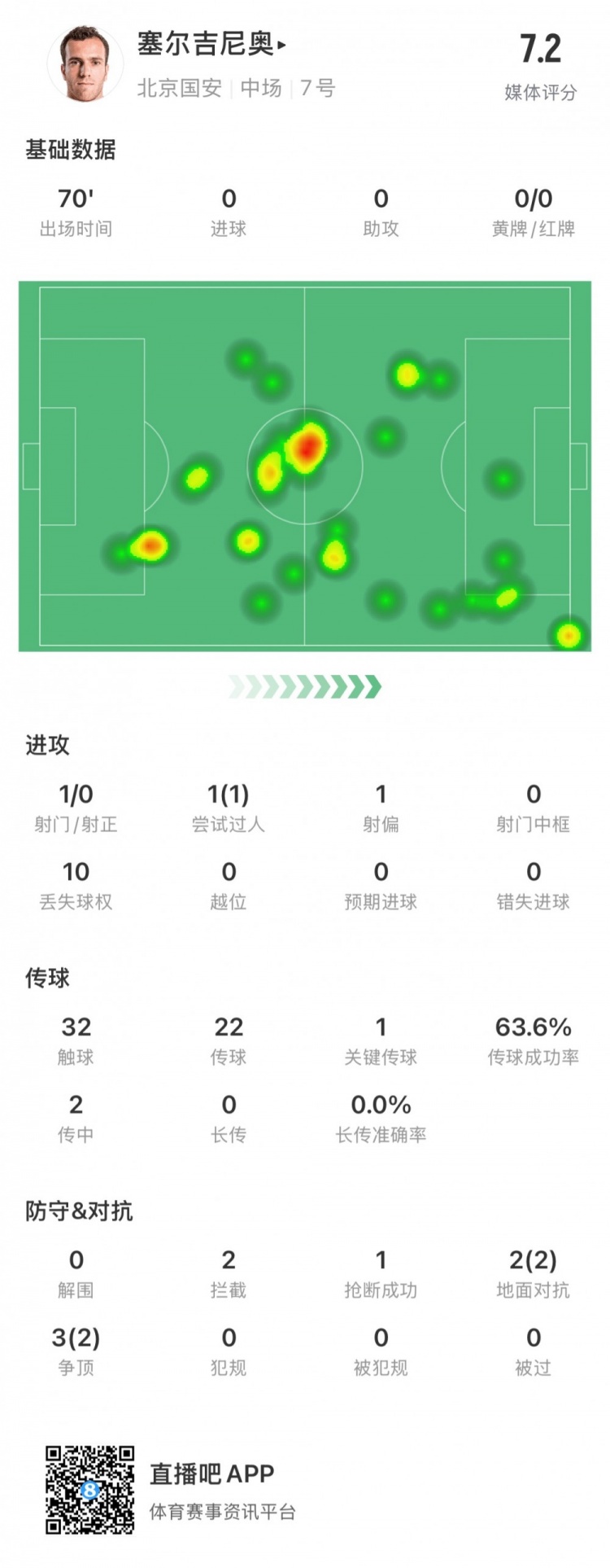 3月29日訊 今晚進(jìn)行的中超第三輪比賽,北京國安主場迎戰(zhàn)成都蓉城,首發(fā)登場的塞爾吉尼奧迎來國安生涯首秀。第70分鐘塞爾吉尼奧被隊(duì)友換下,此役他個(gè)人數(shù)據(jù)如下: