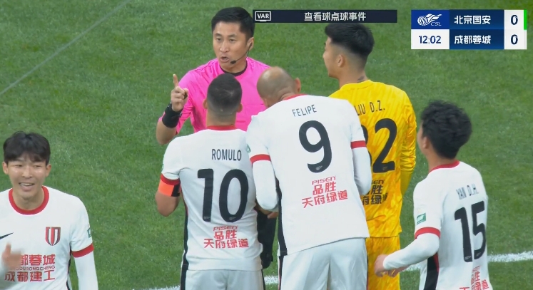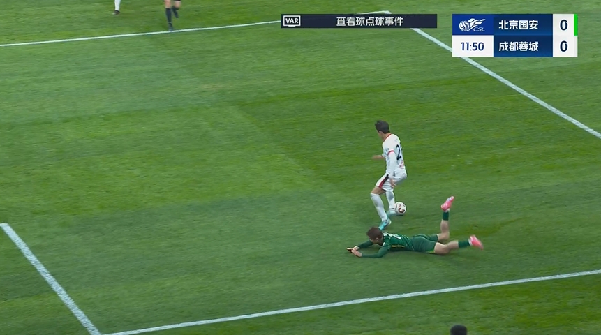 比賽第11分鐘,楊立瑜突破至禁區(qū)內(nèi)與元敏誠(chéng)接觸后倒地,馬寧果斷判罰點(diǎn)球!隨后VAR介入,馬寧去場(chǎng)邊查看后維持點(diǎn)球判罰。第18分鐘法比奧點(diǎn)射破門(mén),國(guó)安1-0領(lǐng)先蓉城。
