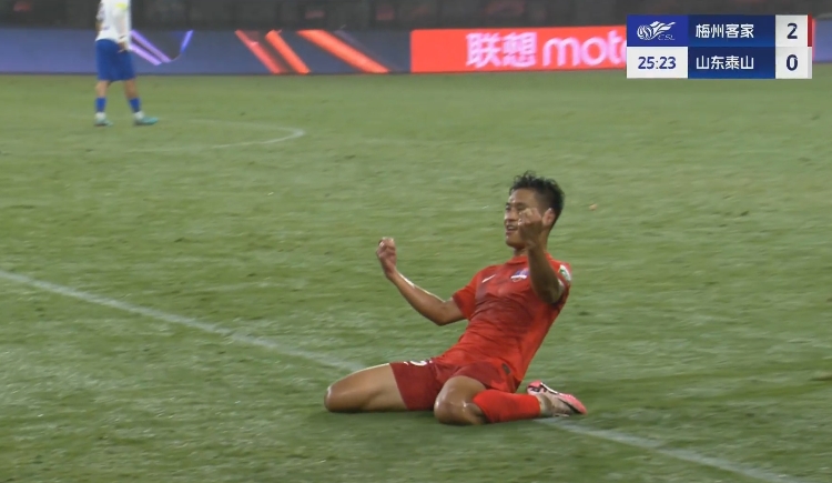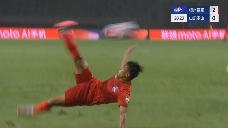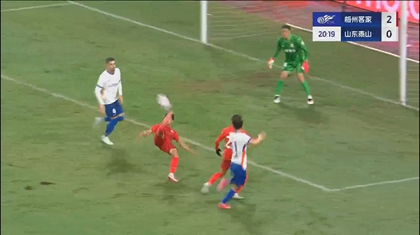 03月29日訊 梅州vs泰山第20分鐘,梅州前場快速傳切配合,楊超聲精彩倒鉤!梅州2-0領先泰山!