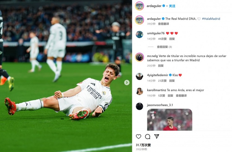 居勒爾也在賽后通過(guò)社媒曬出自己的慶祝照并配文:“皇馬DNA!”