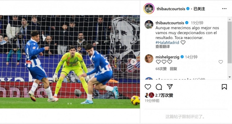 2月2日訊 西甲第22輪比賽,皇馬客場0-1不敵西班牙人。庫爾圖瓦在社交媒體上曬出比賽照片,并寫道:“盡管我們的表現(xiàn)配得上更好的結(jié)果,但我們?nèi)匀粚?duì)失利感到非常失望,是時(shí)候做出反應(yīng)了。”北京時(shí)間2月6日凌晨,皇馬將在國王杯1/4決賽中對(duì)陣萊加內(nèi)斯。 本文標(biāo)簽: 足球 西甲 皇家馬德里