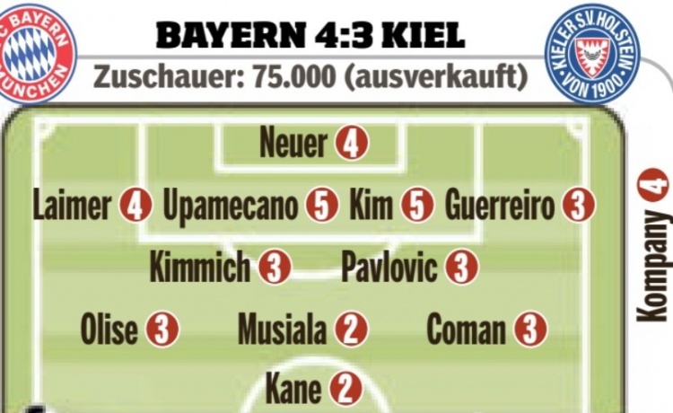 圖片報拜仁賽后評分:1分最佳,5分最差