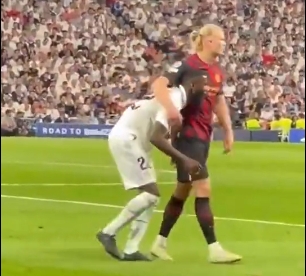 這樣一來,我們將很難再次見到呂迪格對位哈蘭德的場面↓。2023年歐冠半決賽,呂迪格貼身盯防哈蘭德成為了足壇名場面之一。
