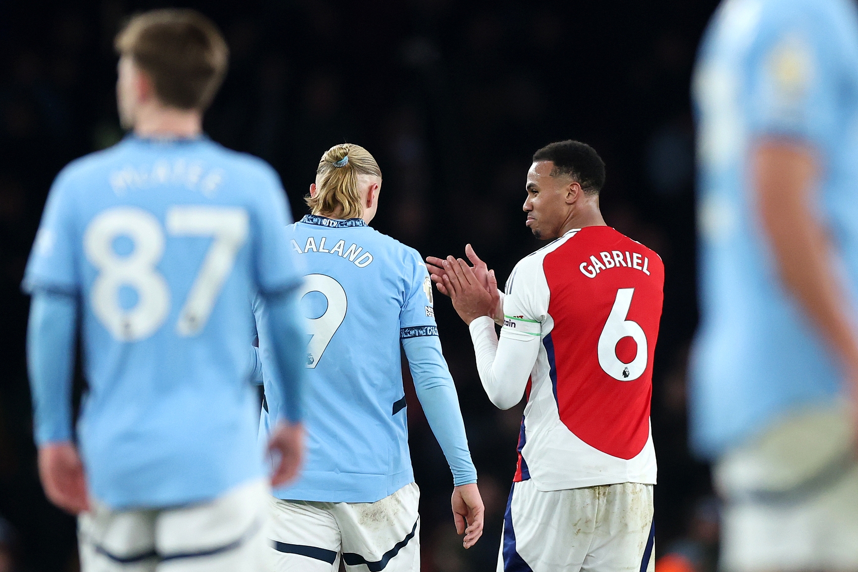 02月03日訊 阿森納5-1大勝曼城,賽后加布里埃爾緊緊跟著哈蘭德,手指指他并且鼓掌!