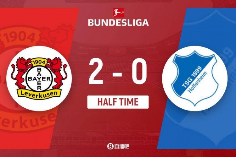 傷停補(bǔ)時(shí)4分鐘。上半場比賽結(jié)束,勒沃庫森2-0霍芬海姆。
