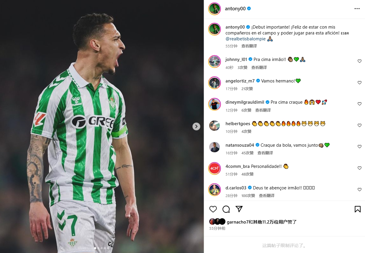 2月3日訊 西甲第22輪比賽,安東尼首發(fā)出戰(zhàn)上演貝蒂斯首秀,幫助貝蒂斯主場2-2戰(zhàn)平畢爾巴鄂,他也當(dāng)選此役全場最佳球員。安東尼賽后在社交媒體上寫道:“重要的首秀!很高興與我的隊(duì)友們在場上并肩作戰(zhàn),為貝蒂斯球迷們踢球!”安東尼射門被撲,隊(duì)友補(bǔ)射破門 本文標(biāo)簽: 足球 西甲 貝蒂斯 英超 曼聯(lián)