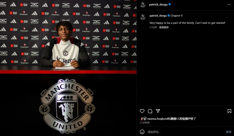 多古寫(xiě)道:生涯第二章,非常開(kāi)心加入曼聯(lián)大家庭,迫不及待要開(kāi)始比賽了!