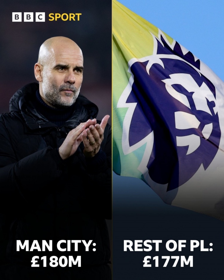 2月4日訊 據(jù)BBC統(tǒng)計,曼城冬窗引援花費的資金多于英超其余19隊之和。曼城冬窗簽下雷斯、尼科-岡薩雷斯、胡桑諾夫、馬爾穆什4位重要新援,BBC指出,曼城這個冬窗花費1.8億英鎊引援,而英超其余19隊花費1.77億英鎊。不過英超冬窗引援花費紀(jì)錄仍由切爾西保持,藍(lán)軍2023年冬窗花費2.75億英鎊引援。 本文標(biāo)簽: 足球 英超 曼城