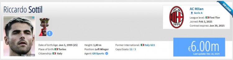 現(xiàn)在,兩名球員的德轉(zhuǎn)頁(yè)面所屬球隊(duì)都已經(jīng)改為AC米蘭。