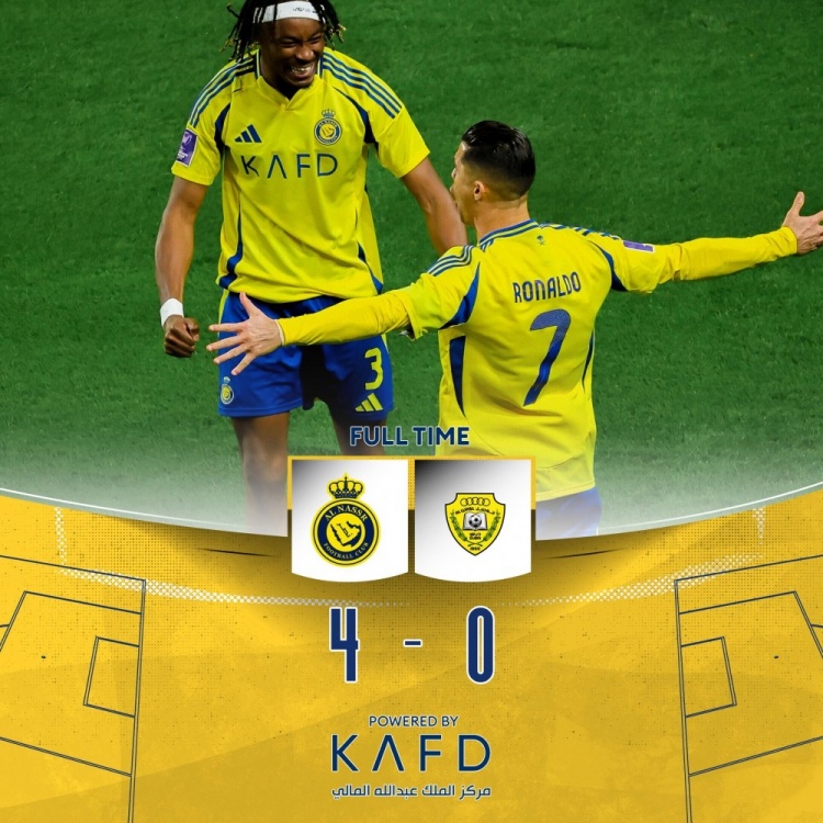 亞冠精英聯(lián)賽第7輪,C羅梅開(kāi)二度,利雅得勝利4-0迪拜祈禱。