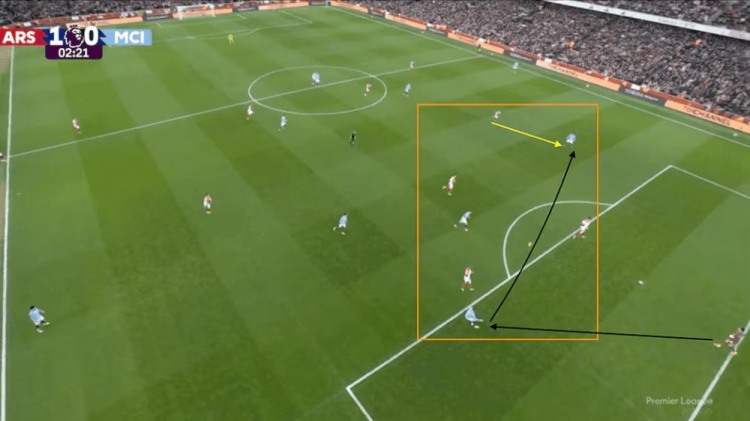 首先,球隊(duì)嚴(yán)格執(zhí)行了阿爾特塔前場高壓的戰(zhàn)術(shù),開場2分鐘的進(jìn)球就是源于前場的局部4打3,從結(jié)果來看球隊(duì)的戰(zhàn)術(shù)效果非常出色。哈弗茨隨后錯失單刀的機(jī)會也是球隊(duì)力拼下來的,可惜沒能形成進(jìn)球。托馬斯下半場的進(jìn)球同樣源自高位攔截,他的破門是從福登的傳球攔下的。