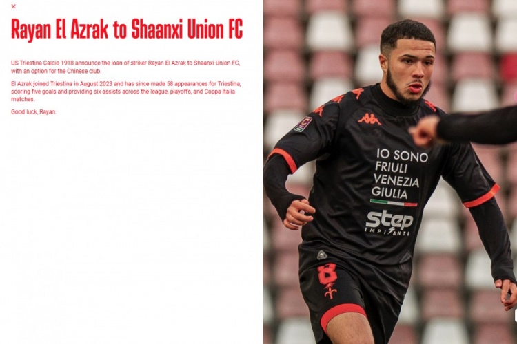 2月4日訊 意丙球隊(duì)特里埃斯蒂納官方宣布,荷蘭球員拉揚(yáng)-埃爾阿茲拉克以租借并附帶買斷條款的方式加盟陜西聯(lián)合。