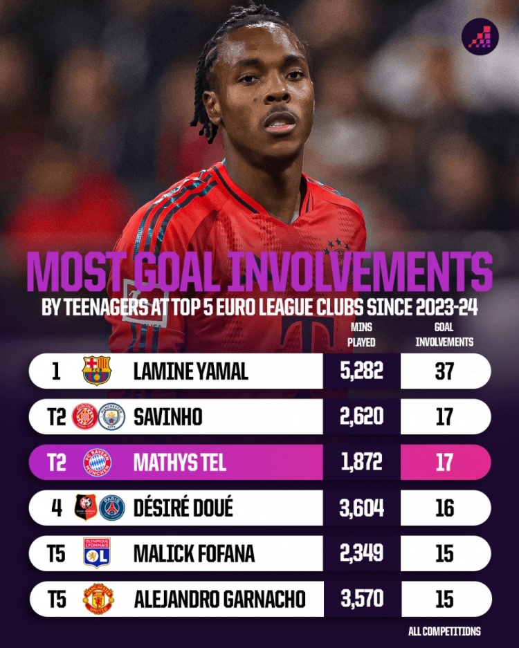 2月5日訊 拜仁前鋒特爾已經(jīng)官宣租借加盟熱刺,OPTA數(shù)據(jù)統(tǒng)計(jì)顯示他在近2賽季五大聯(lián)賽參加進(jìn)球第二多的U20球員,且出場(chǎng)時(shí)間是前五最少。