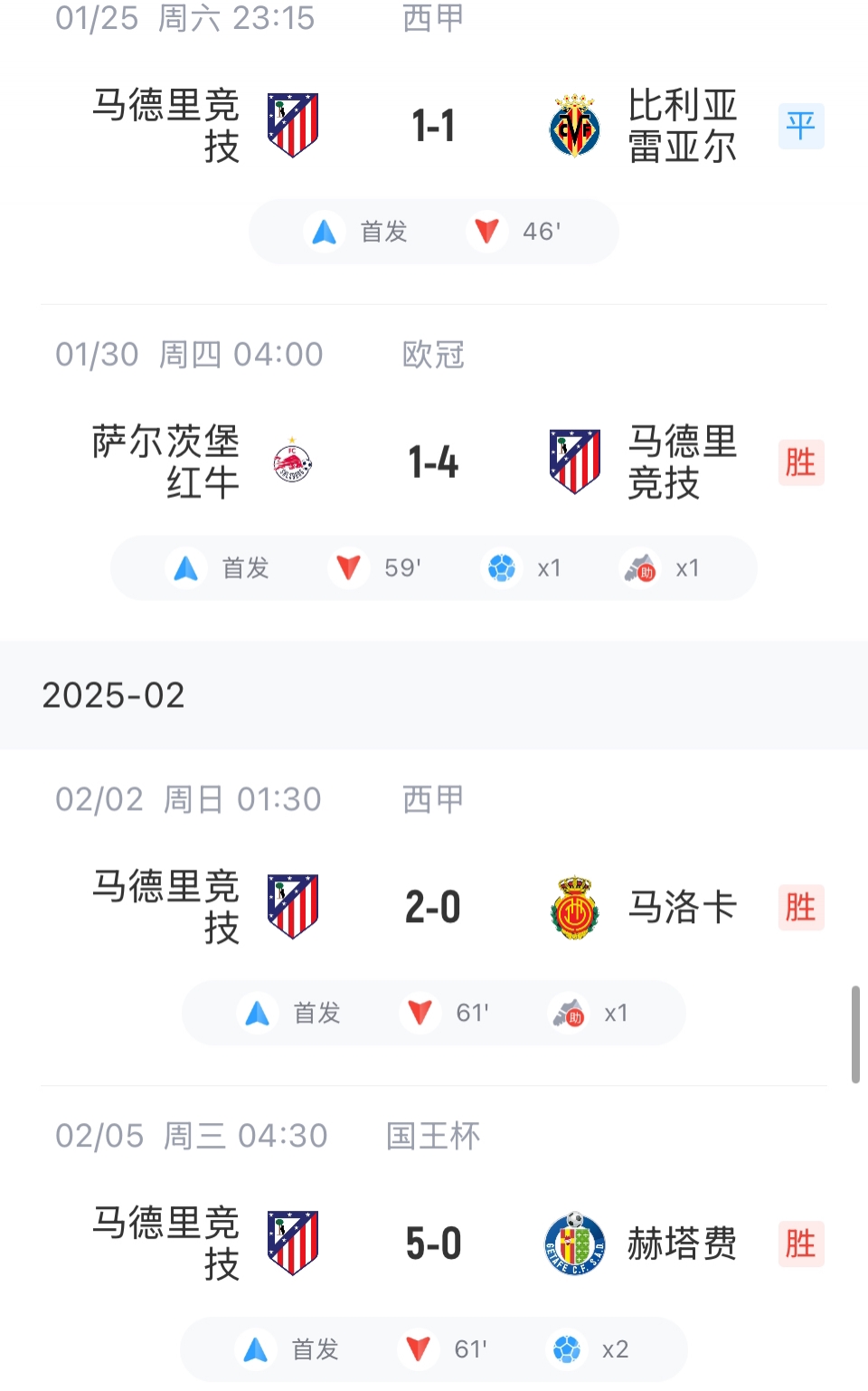 02月05日訊 馬競在本輪國王杯主場5-0血洗赫塔費,西蒙尼的三兒子朱利亞諾-西蒙尼本場打進2球。朱利亞諾-西蒙尼現(xiàn)年22歲,近期已逐漸成為馬競首發(fā)球員,在馬競的近三場比賽里他全部首發(fā)出戰(zhàn),一共貢獻了3球2助。朱利亞諾-西蒙尼近期數(shù)據(jù): 本文標(biāo)簽: 足球 西甲 馬德里競技 赫塔費