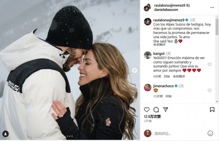 2月5日訊 富勒姆前鋒勞爾-希門尼斯今天在Instagram發(fā)文,表示自己求婚成功。33歲的勞爾-希門尼斯寫道:“在瑞士阿爾卑斯山的見證下,今天我們不僅僅是訂婚,更是許下一生相伴的諾言,我愛你!她答應(yīng)了!??????” 本文標(biāo)簽: 足球 英超 富勒姆