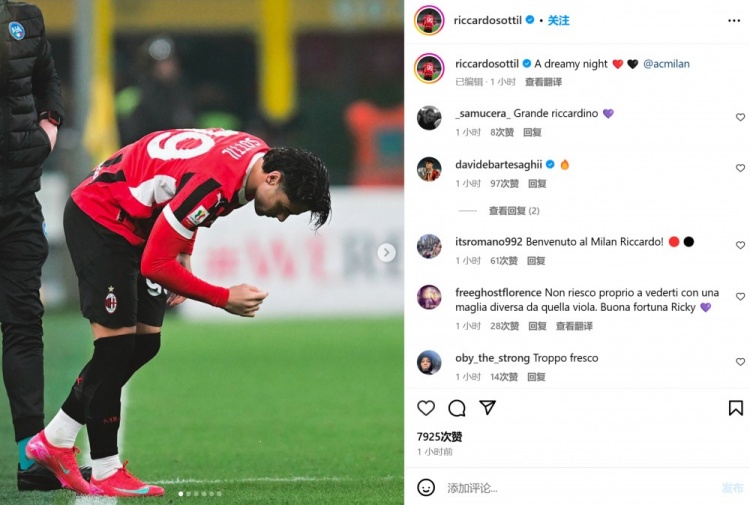 2月6日訊 米蘭在本輪意大利杯3-1力克羅馬,租借加盟的新援索蒂爾替補(bǔ)上演首秀。他也在賽后通過(guò)社媒曬出自己的登場(chǎng)照,并配文:“夢(mèng)幻般的一夜?!?/p>25歲的索蒂爾租借協(xié)議中包含選擇買(mǎi)斷條款,本賽季此前為佛羅倫薩出戰(zhàn)25場(chǎng),貢獻(xiàn)5球3助攻。 本文標(biāo)簽: 足球 意甲 AC米蘭 羅馬