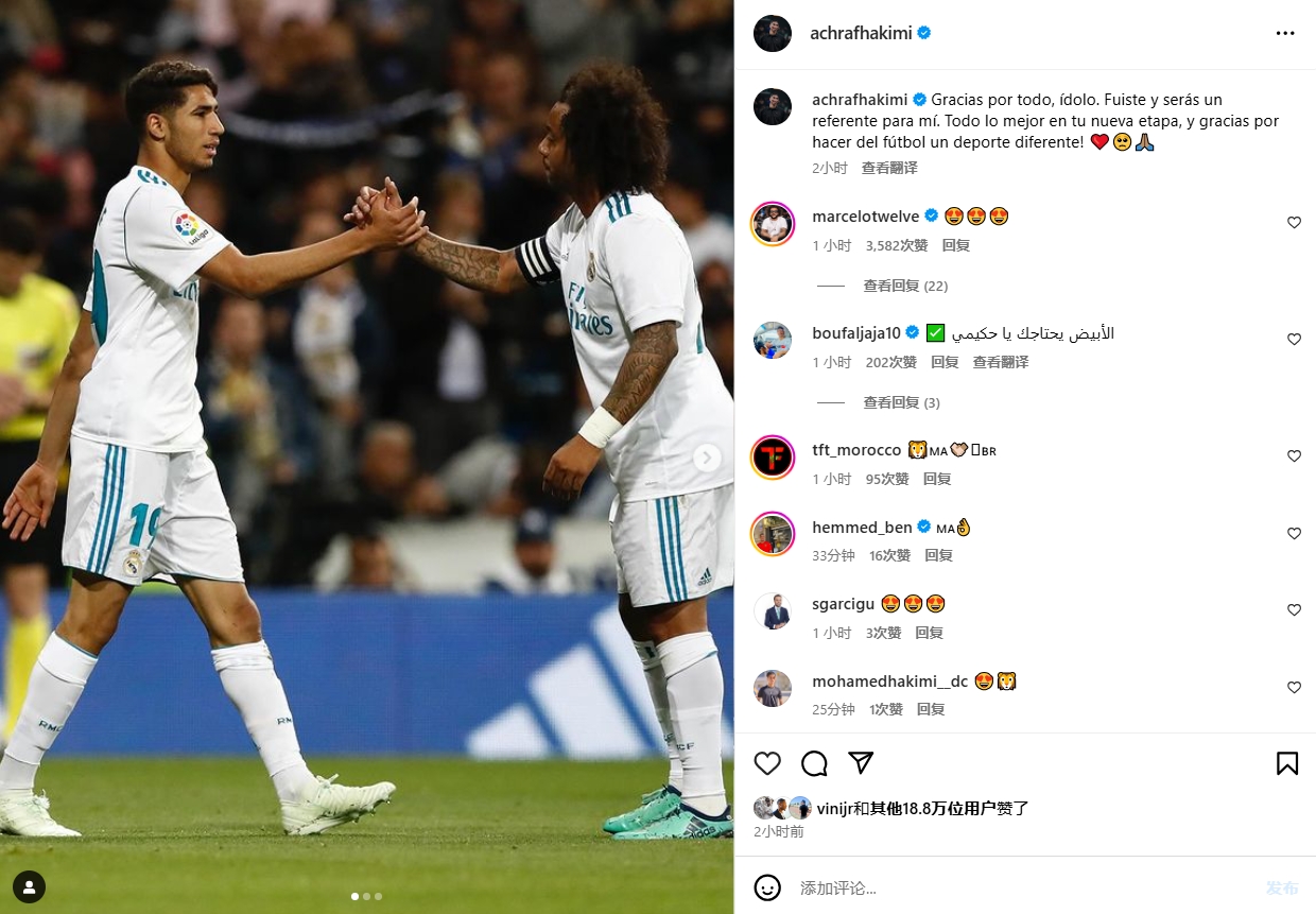 2月7日訊 皇馬傳奇左后衛(wèi)馬塞洛已經(jīng)官宣退役,曾在皇馬和他共事過的右后衛(wèi)阿什拉夫通過社媒送上祝福。阿什拉夫曬出自己和馬塞洛的同框照,并表示:“謝謝你所做的一切,偶像。你曾經(jīng)是、將來也仍然是我的榜樣。祝你在新的舞臺(tái)一切順利,感謝你讓足球變得截然不同?!?/p> 本文標(biāo)簽: 足球 法甲 巴黎圣日耳曼 西甲 皇家馬德里
