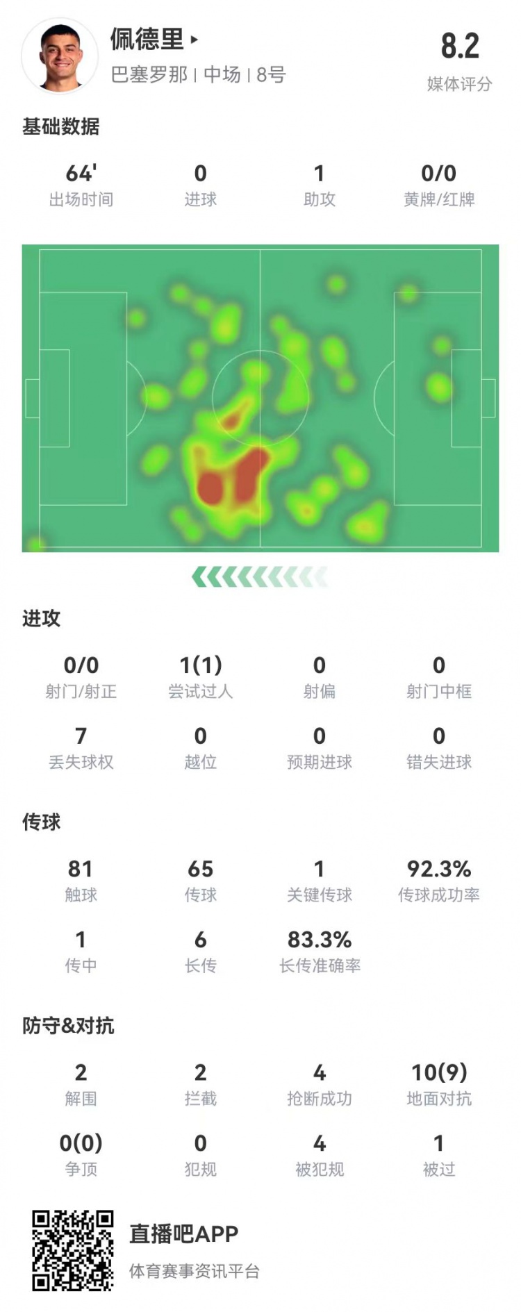 2月7日訊 巴薩在本輪國(guó)王杯5-0領(lǐng)先瓦倫西亞,佩德里本場(chǎng)數(shù)據(jù)如下: