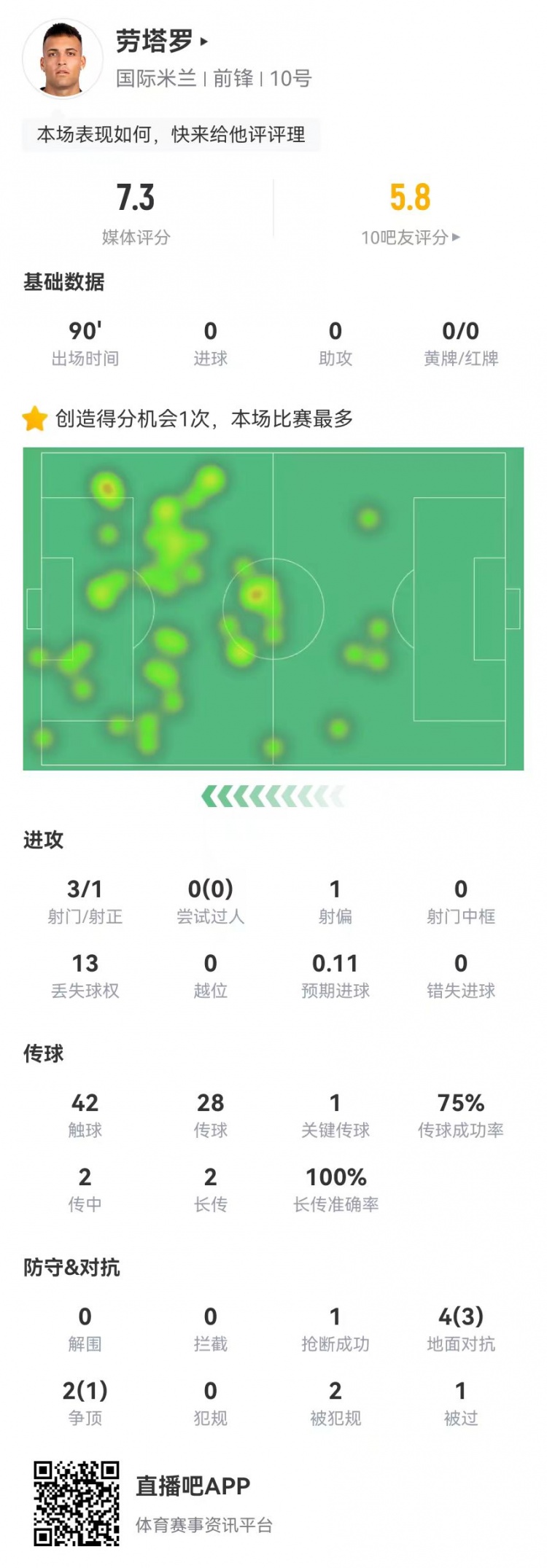 2月7日訊 國米在本輪意甲補賽0-3不敵佛羅倫薩,勞塔羅本場數(shù)據(jù)如下:首發(fā)踢滿全場3射門、1射正42觸球28傳球、21成功,成功率75%1關鍵傳球2傳中、0成功2長傳、2成功1創(chuàng)造重大機會6對抗、4成功13丟失球權2造犯規(guī)1搶斷獲評7.3分 本文標簽: 足球 意甲 國際米蘭 佛羅倫薩