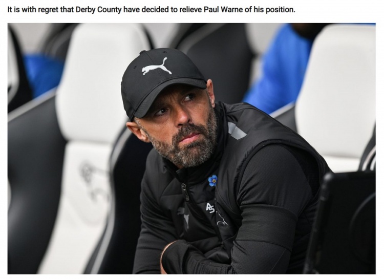 2月7日訊 德比郡官方消息,球隊主帥51歲的保羅-沃恩下課。