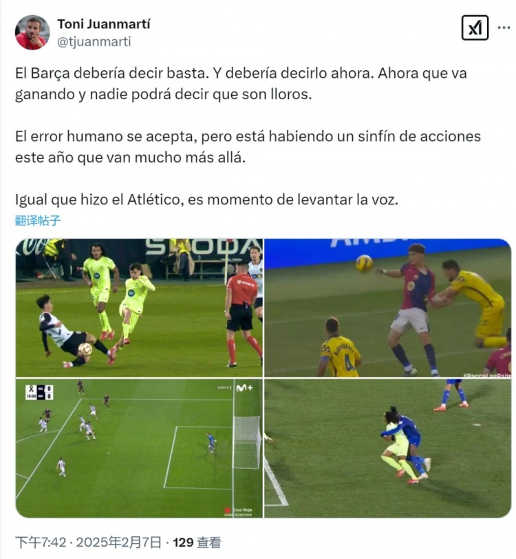 2月7日訊 巴薩跟隊(duì)記者Toni Juanmartí更新社媒動(dòng)態(tài),曬出巴薩本賽季遭到誤判的視頻截圖,并表示巴薩應(yīng)該發(fā)聲。