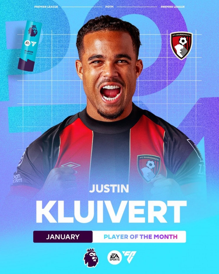 2月7日訊 英超官方宣布,伯恩茅斯邊鋒賈斯汀-克魯伊維特當(dāng)選英超1月最佳球員。