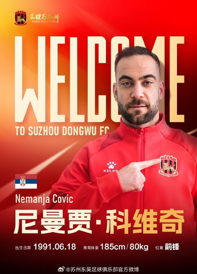 經(jīng)友好協(xié)商并達(dá)成一致,球員尼曼賈 · 科維奇、安德烈耶維奇正式加盟蘇州東吳足球俱樂部,為蘇州東吳出戰(zhàn)新賽季各項賽事。 ??? 本文標(biāo)簽: 足球 中超 中國足球 中甲 蘇州東吳