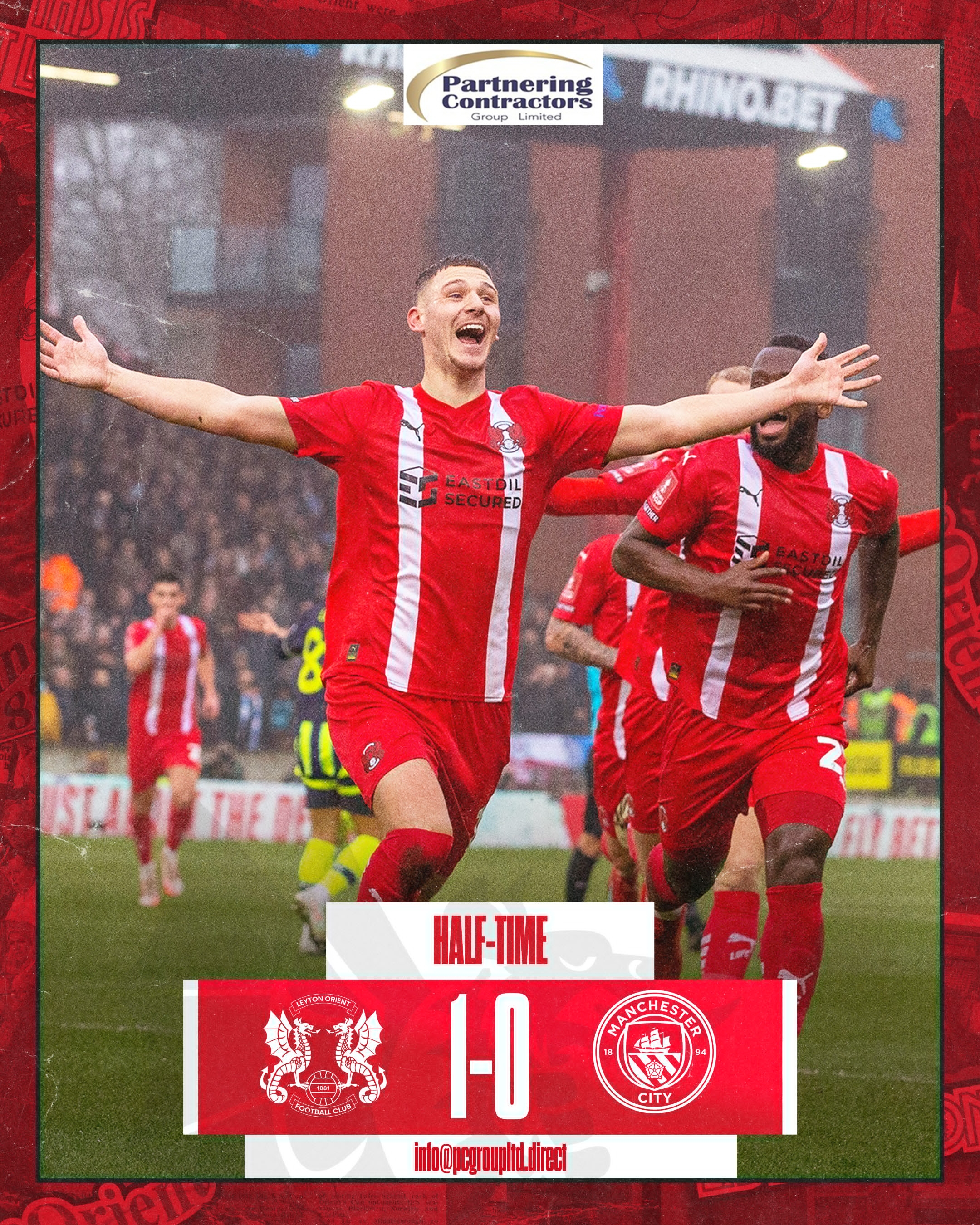 上半場(chǎng)比賽結(jié)束,曼城0-1萊頓東方。