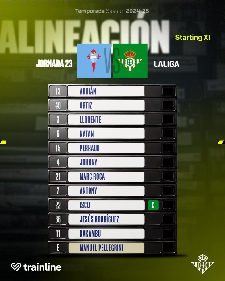 貝蒂斯首發(fā):13-阿德里安、40-奧爾蒂斯、3-迭戈-略倫特、6-納坦、15-佩羅、4-卡爾多索、21-羅卡、36-羅德里格斯、22伊斯科、7安東尼、11-巴坎布