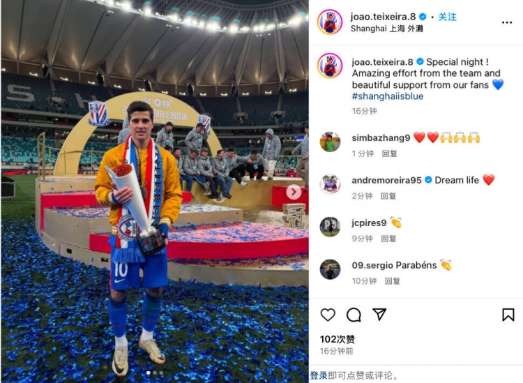 2月8日訊 足協(xié)超級杯決賽,上海申花3-2讀秒絕殺上海海港,連續(xù)兩年奪得超級杯冠軍。賽后申花外援特謝拉曬出捧杯照慶祝奪冠,他為照片配文寫道:“一個有著特別意義的夜晚!這場比賽我們的努力是如此巨大,還有球迷們的熱情支持,多么美妙!” 本文標簽: 足球 中超 中國足球 上海海港 上海申花