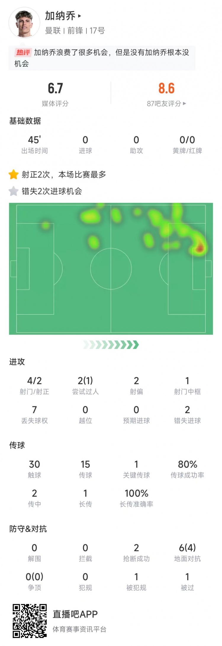 2月8日訊 足總杯第4輪比賽,加納喬替補(bǔ)出場,幫助曼聯(lián)主場2-1擊敗萊斯特城,晉級下一輪。足總杯官方曬出加納喬領(lǐng)獎的照片,宣布他當(dāng)選本場比賽最佳球員。加納喬本場數(shù)據(jù)↓ 本文標(biāo)簽: 足球 英超 曼聯(lián)