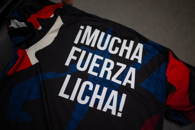 這件熱身球衣上寫著:“堅(jiān)強(qiáng),Licha!”(Licha為利桑德羅的昵稱)