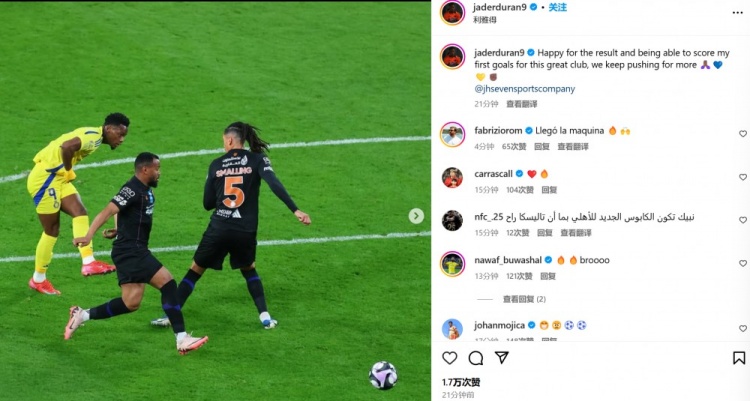 2月8日訊 利雅得勝利在本輪沙特超3-0輕取費(fèi)哈,新援杜蘭首秀雙響建功并獲評官方本場最佳。他也在賽后通過社媒曬出自己的比賽照,并配文:“對勝利感到高興,也很開心能夠?yàn)檫@家的偉大俱樂部打進(jìn)我的處子球,我們會繼續(xù)努力爭取贏得更多?!?/p> 本文標(biāo)簽: 足球 利雅得勝利 五洲